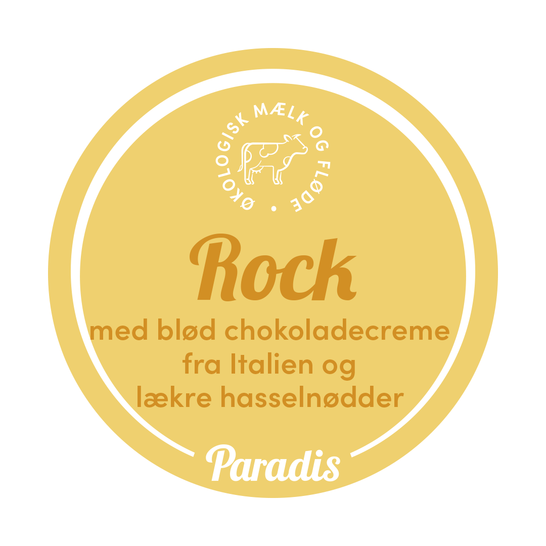 Økologisk ismix (SØDMÆLK°, FLØDE°, rørsukker°, SKUMMETMÆLKSPULVER°, glukose°, dextrose°, stabilsator E412° E410°; °=økologisk), Nøddecreme (sukker, solsikke- og pamleolie, HASSELNØDDEPASTA, kakaopulver, SKUMMETMÆLKSPULVER, LAKTOSE, emulgator E322 SOJALECITHIN, MÆLKEPROTEIN, aroma; kan indeholde spor af andre nødder (MANDEL, VALNØD, CASHEW, PISTACIE) samt JORDNØD, SESAM og ÆG), Økologisk PISKEFLØDE, Dextrose, hasselnødder